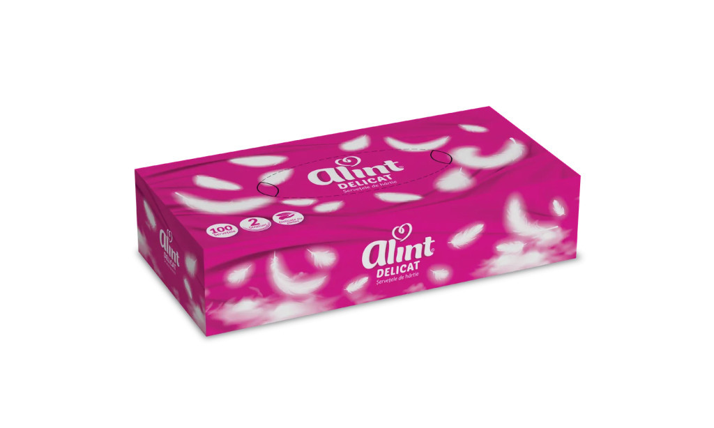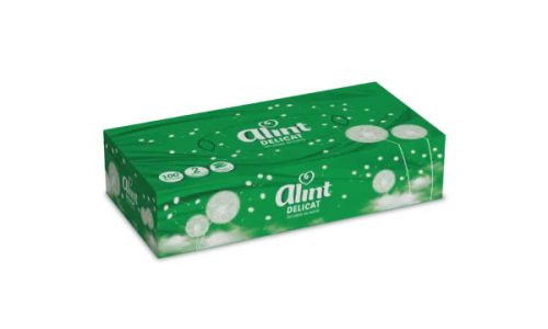 Alint kozmetikai kendő fehér, 2 rétegű, 100db/doboz,, 21doboz/karton, 60karton/raklap