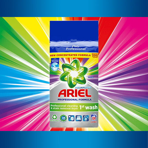 Az Ariel Professional mosópor fehér ruházatra, professzionális felhasználásra lett kifejlesztve. Tökéletesen tisztít és eltávolítja a professzionális létesítményekben előforduló foltokat. Úgy tervezték, hogy az első mosás során kiváló eredményeket érjen el áztatás vagy előmosás nélkül. Több mosás után is megőrzi a ruhák fehérségét és kellemes, friss illatot biztosít. Hatékony már 20°C -os mosásnál is. Foszfátmentes.