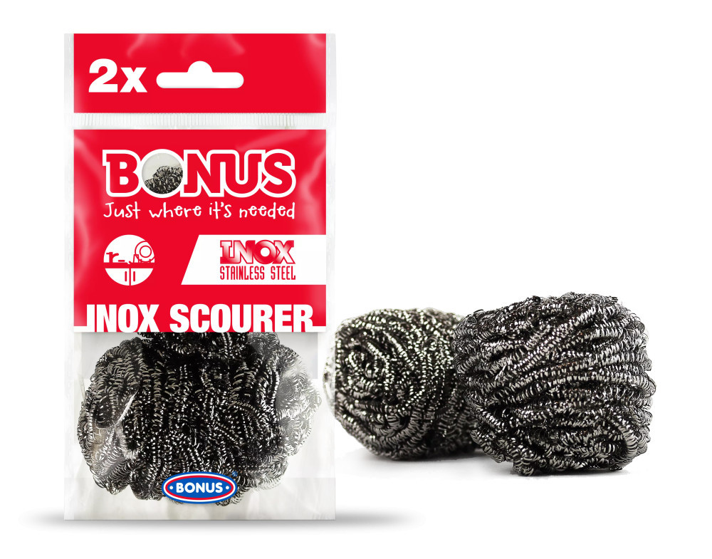 A BONUS INOX spirál dörzsi erőteljes súrolóhatással igazi nagyágyú a takarításban.