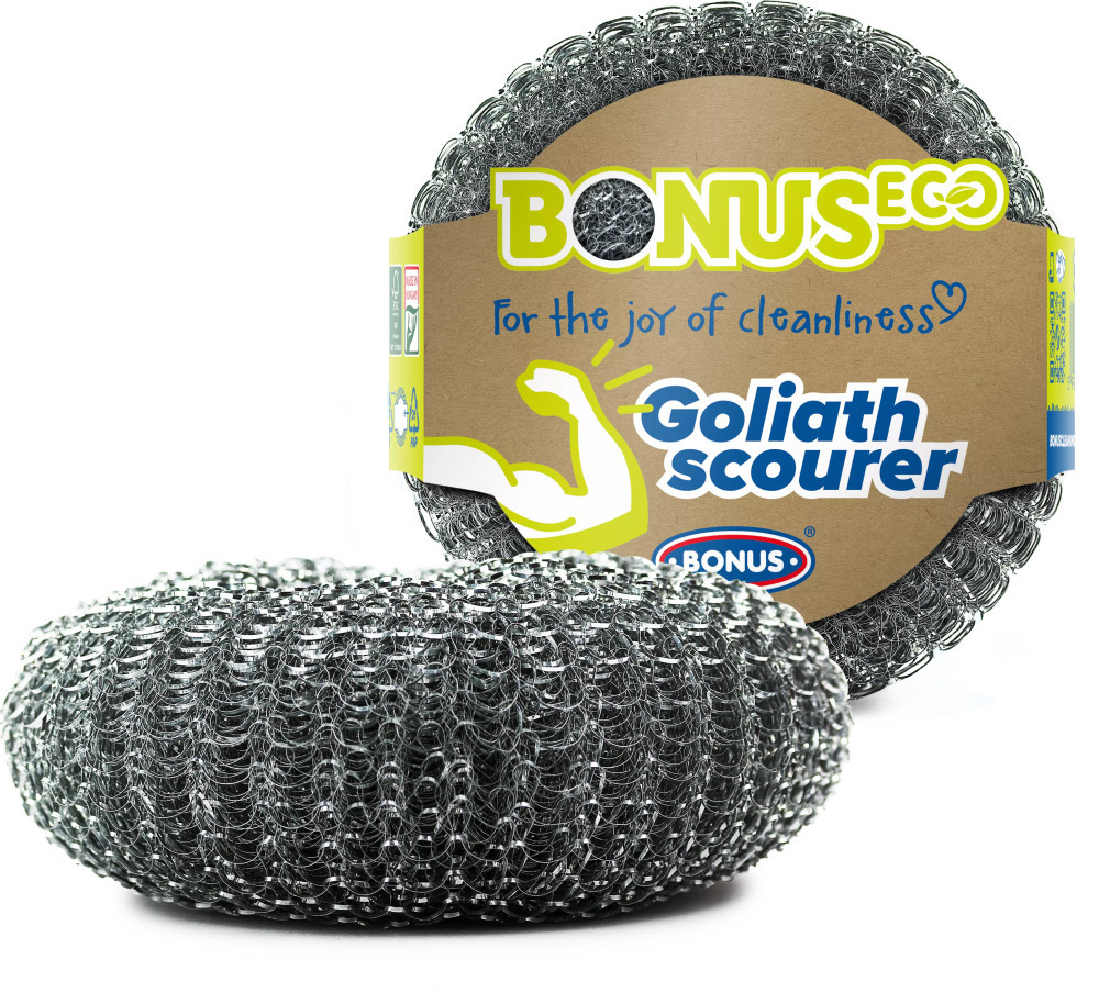 Ez a termék a legnagyobb háztartási feladatokhoz lett kitalálva: óriási súrolóereje nem ismer lehetetlent és egyszerűvé teszi még a legrettegettebb házimunkát is! Minek köszönhető ez az óriási hatóerő? A BONUS Góliát fém dörzsi galvanizált acélból készül, amit a milliméter tört részére lapítunk, majd erős fém hálót fonunk belőle. Így jön létre a rendkívül tömör, ellenálló súrolóeszköz!