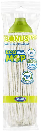 Egy ilyen klasszikus, sokoldalú terméket a környezetbarát megoldások tesznek még szerethetőbbé. Annak érdekében, hogy védjük a Földet, a BONUS EcoMOP-ot újrahasznosított pamutból készítettük. Mit jelent ez pontosan? A felmosófejben kidobott és fel nem használt szövet és ruházati termékek kelnek új életre.