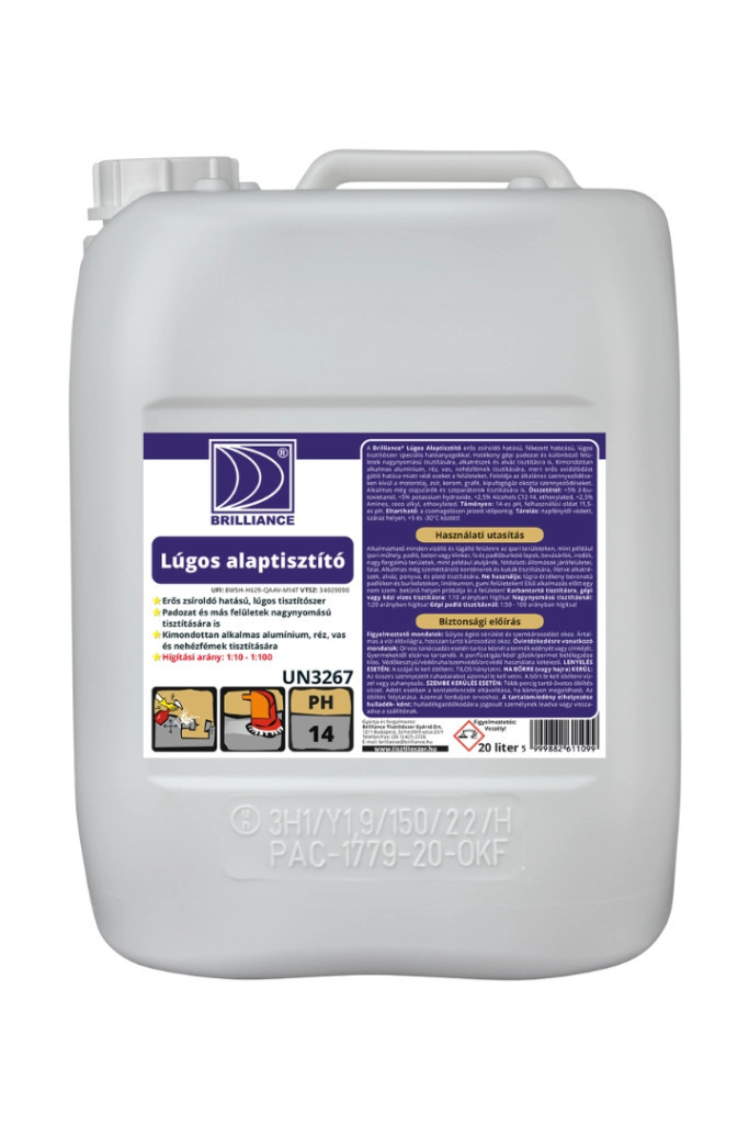 A Brilliance® Lúgos alaptisztító erős zsíroldó hatású, fékezett habzású, lúgos tisztítószer speciális hatóanyagokkal. Hatékony gépi padozat és különböző felületek nagynyomású tisztítására, alkatrészek és alváztisztításra is. Kimondottan alkalmas alumínium, réz, vas, nehézfémek tisztítására, mert erős komplexképző hatása miatt ezeket a felületeket újjá varázsolja. Feloldja az általános szennyeződéseken kívül a motorolaj, zsír, korom, grafit, kipufogógáz okozta szennyeződéseket. Alkalmas még olajszűrők és szeparátorok tisztítására is. Más hatásmechanizmussal működik, mint a Brilliance® Ipari tisztítószer, ezért működhet olyan szennyeződéseken is, ahol azzal kudarcot vallottunk és ez természetesen fordítva is igaz.