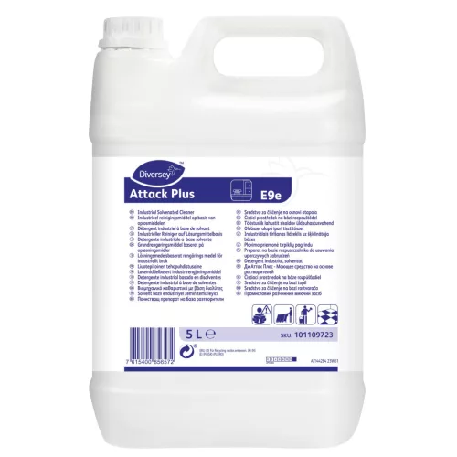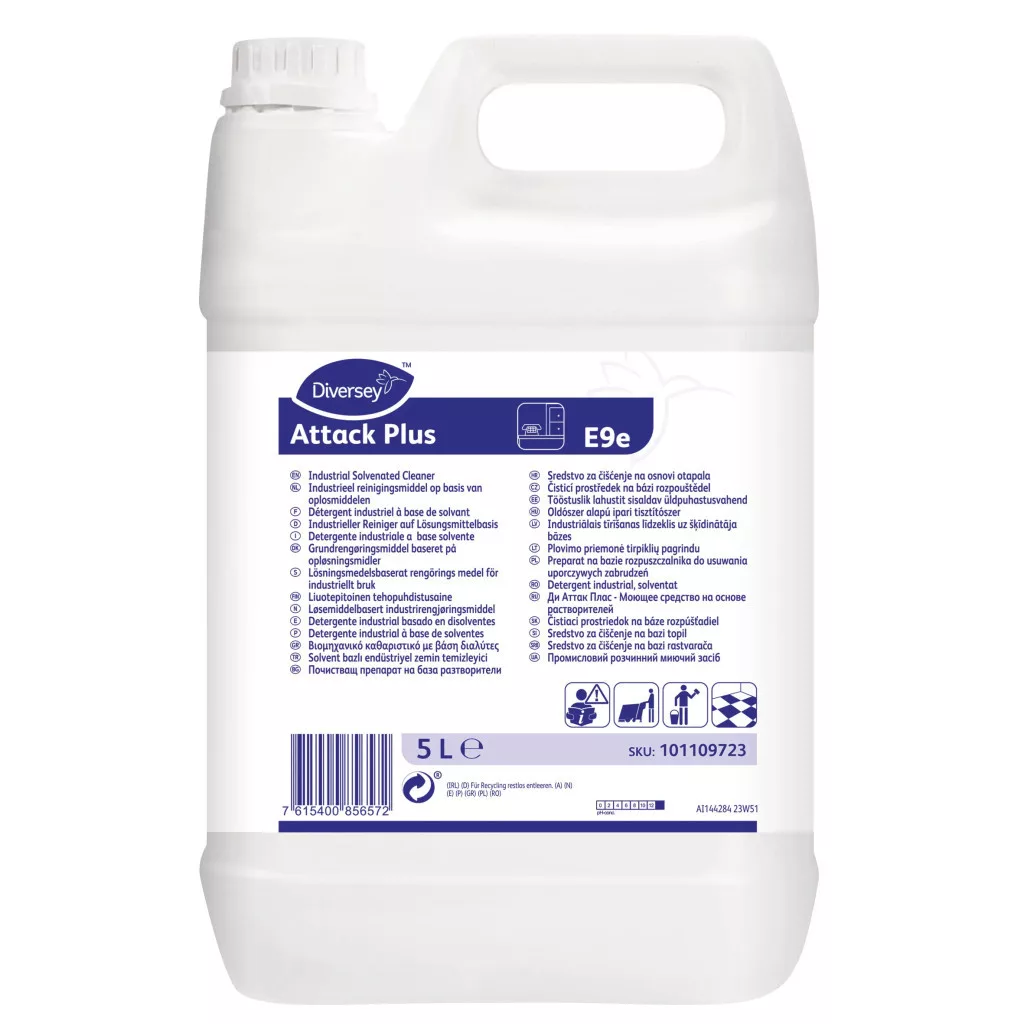 Diversey Attack Plus E9e 5L - Erős hatékonyságú, oldószer-alapú tisztítószer