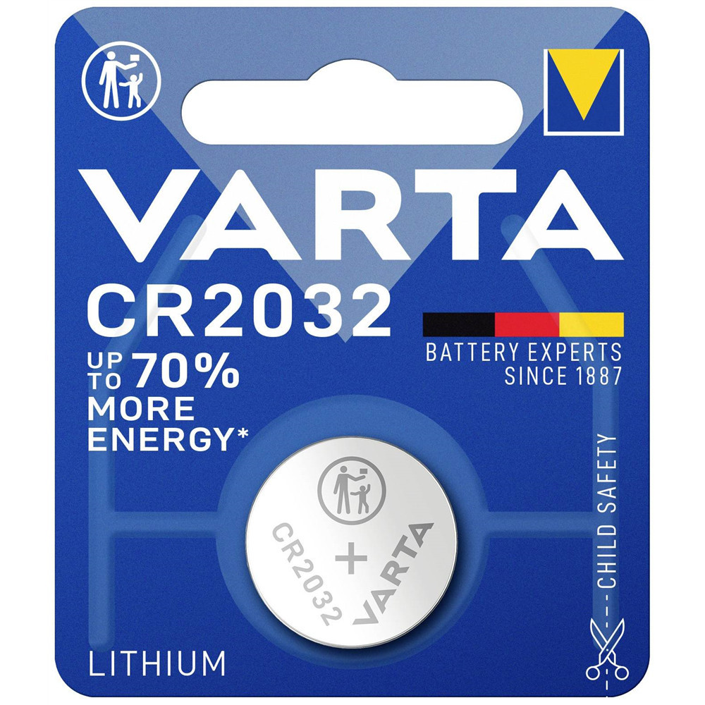 A Varta CR2032 lítium gombelem megbízható és tartós energiaforrás, így biztos lehet benne, hogy a készülékei jó kezekben vannak!