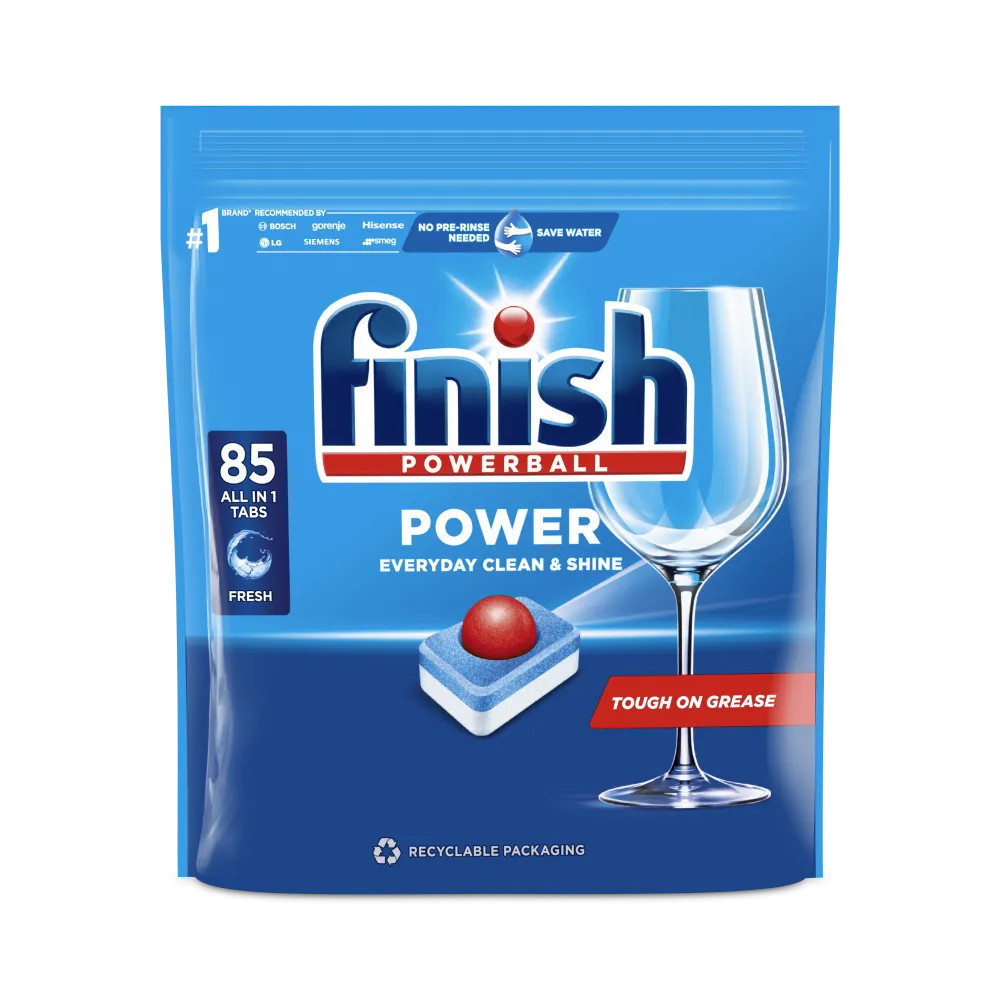 A Finish Power Fresh 85 db all-in-one mosogatógép tabletta erős zsíroldó és citrusos frissességű formula egyetlen adagban, amely minden mosogatási ciklusnál ragyogóan tiszta és csíkmentes edényeket biztosít.a