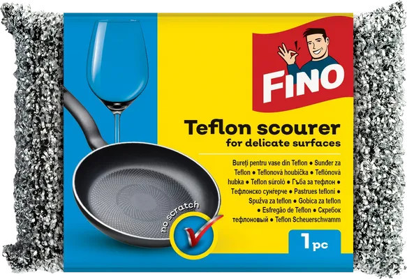 Az Fino Teflon szivacs egy speciális anyagösszetételű tisztítóeszköz, amely kiválóan alkalmas bármilyen tapadásmentes, teflon réteggel bevont konyhai eszköz tisztítására.