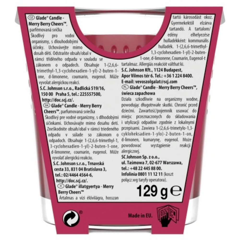 Töltsd meg otthonodat a zamatos erdei bogyók illatával — a Glade Winter Berry gyertya aromája az áfonya, ribizli és málna jegyeit kelti életre, egy kis télies fűszerességgel kiegészítve. A 112 g-os kiszerelés ideális méret – elegendő illatélményt nyújt a hidegebb hónapokra, miközben dekoratív kiegészítőként is ragyog a szoba díszeként. Égése kiegyensúlyozott és hosszú, így akár órákon át élvezheted a bogyók varázsát.