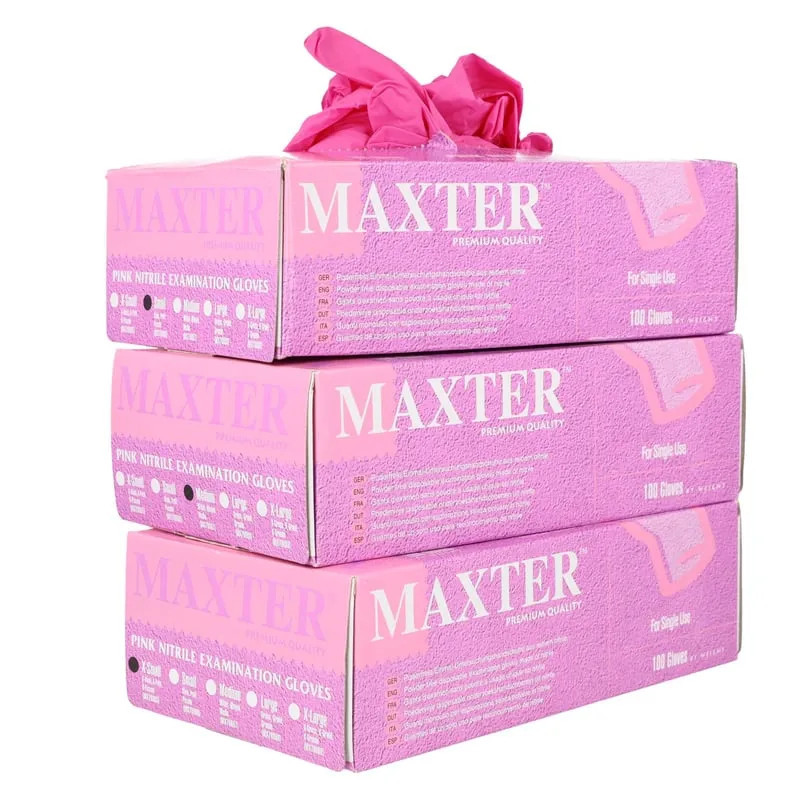 Gumikesztyű Maxter nitril PÚDER NÉLKÜLI RÓZSASZÍN "S" 100db/doboz, 10doboz/karton