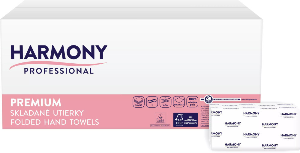 Harmony kéztörlő Z. hajt, 2r., fehér, 150lap/csg, 20csg/karton, 32karton/raklap