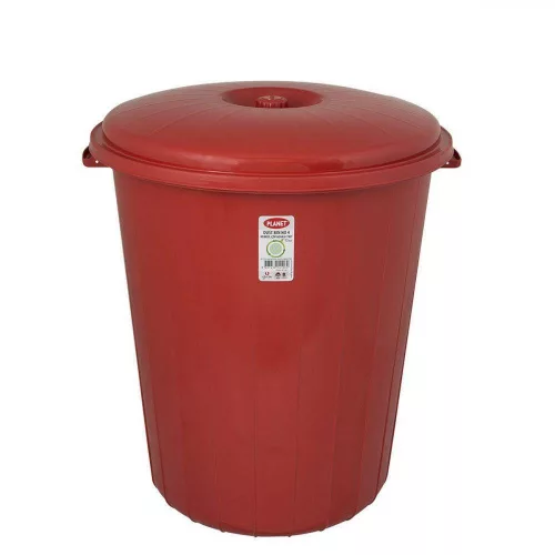 Planet Kerek szemetes kuka, fedéllel, műanyag, eco piros 70 L
