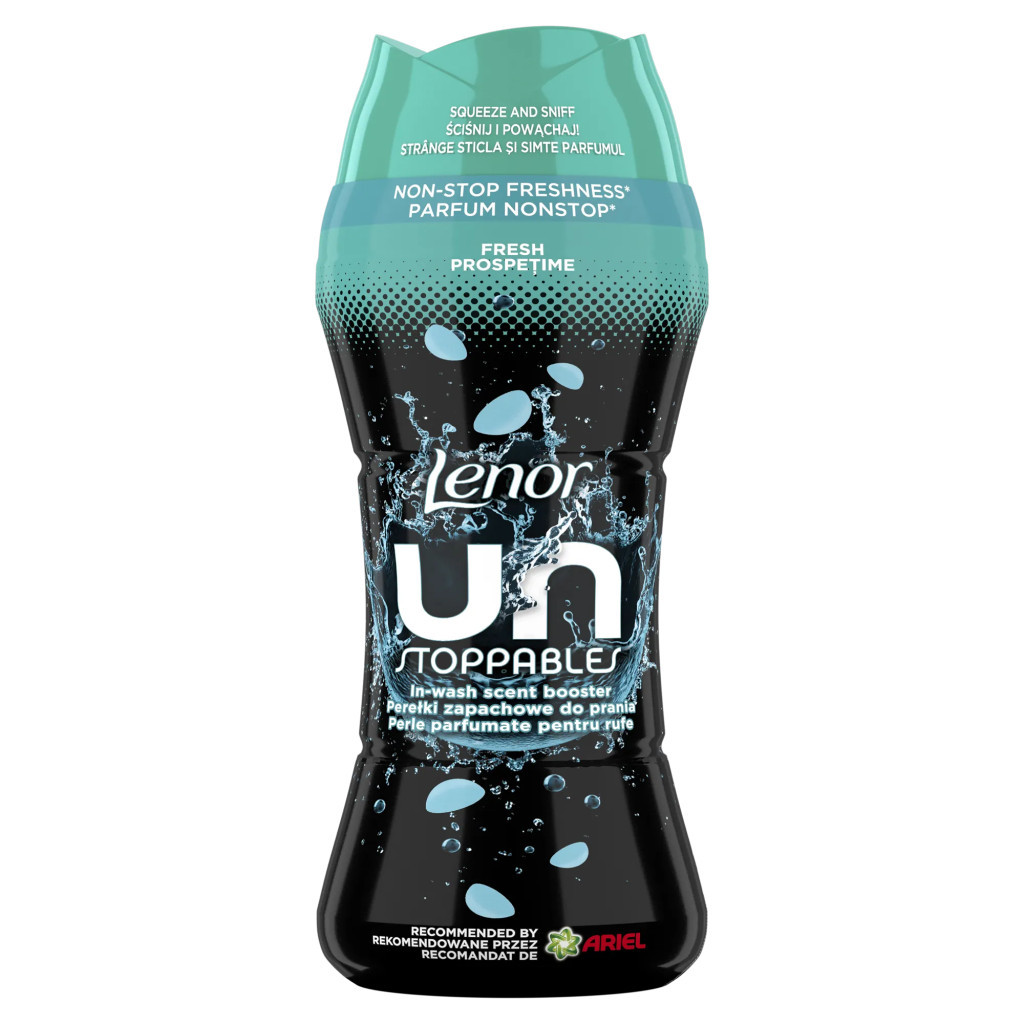 A Lenor Unstoppables Fresh illatgyöngyök olyan mosáshoz adható aroma-fokozók, amelyek mosás közben oldódnak fel, és intenzív, üde, tavaszi-friss illatot juttatnak a ruhák szálai közé. A citrusos és friss jegyeket hordozó illatkompozíció energikus, tiszta érzetet ad, amely nemcsak a mosás pillanatában, hanem még hetekig megmarad a ruhákban — ideális frissesség azoknak, akik szeretik a mindig „új” ruhák illatát.