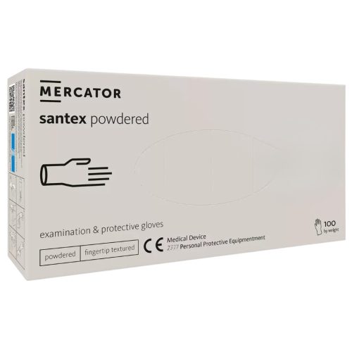 MERCATOR gumikesztyű Santex powdered latex púderes vizsgálókesztyű "XS" (100db/doboz, 10doboz/karton)