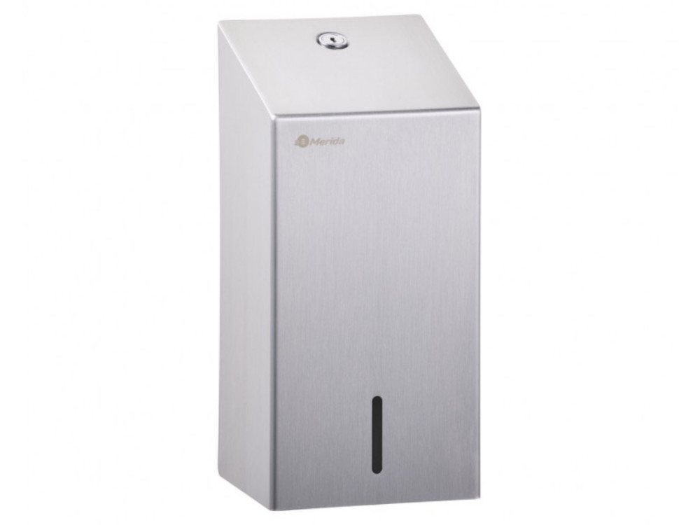 A Merida hajtogatott rozsdamentes toalettpapír adagoló, szálcsiszolt kivitelben készült.