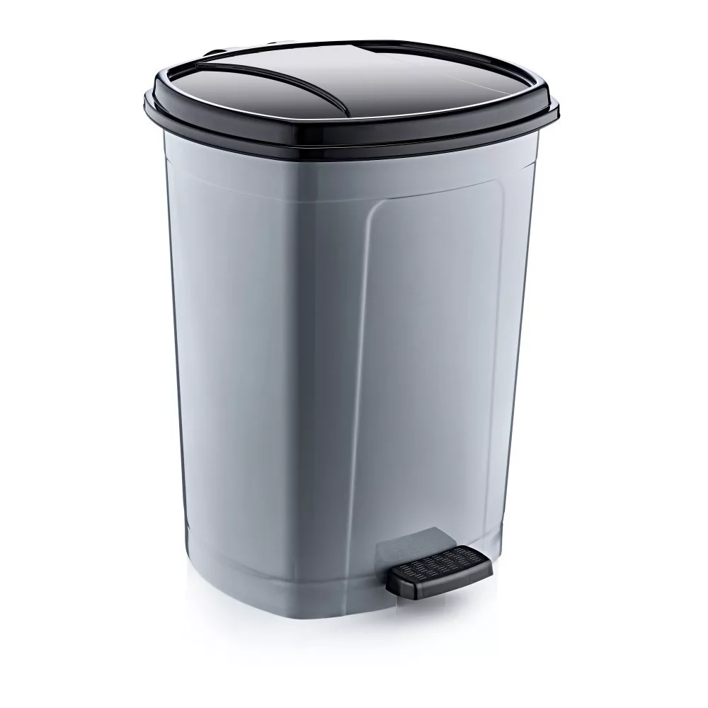 Műanyag pedálos szemetes, ezüst/fekete 50L