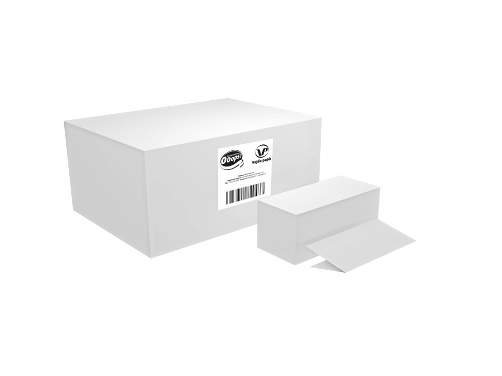 Ooops! kéztörlő V hajtogatott, 2 rétegű, fehér, 150 lap/csg, 20 csg/karton (36 karton/raklap)