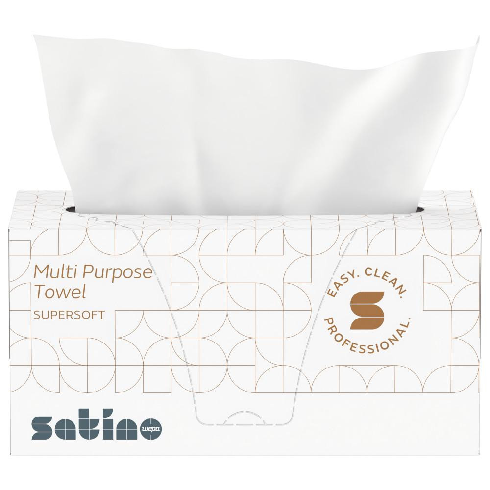 Satino Wepa Supersoft többcélű V hajtogatott törlőkendő 2 réteg, fehér, 22x21cm, 15x200 lap/karton