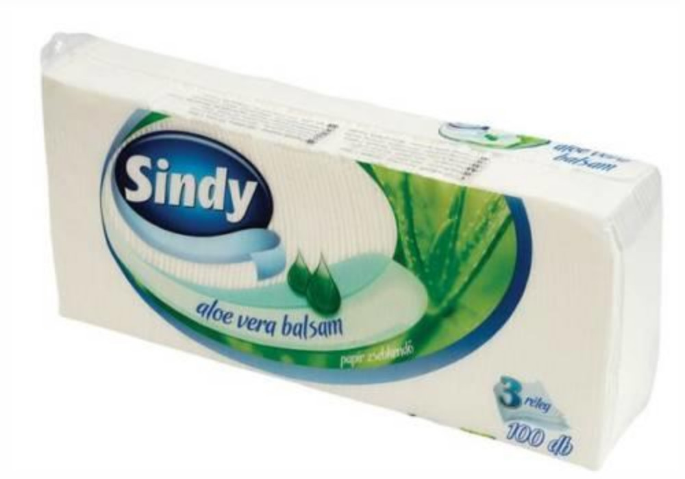 Sindy papírzsebkendő aloe vera 3r., 100db/csg, 60csg/karton, 24karton/raklap