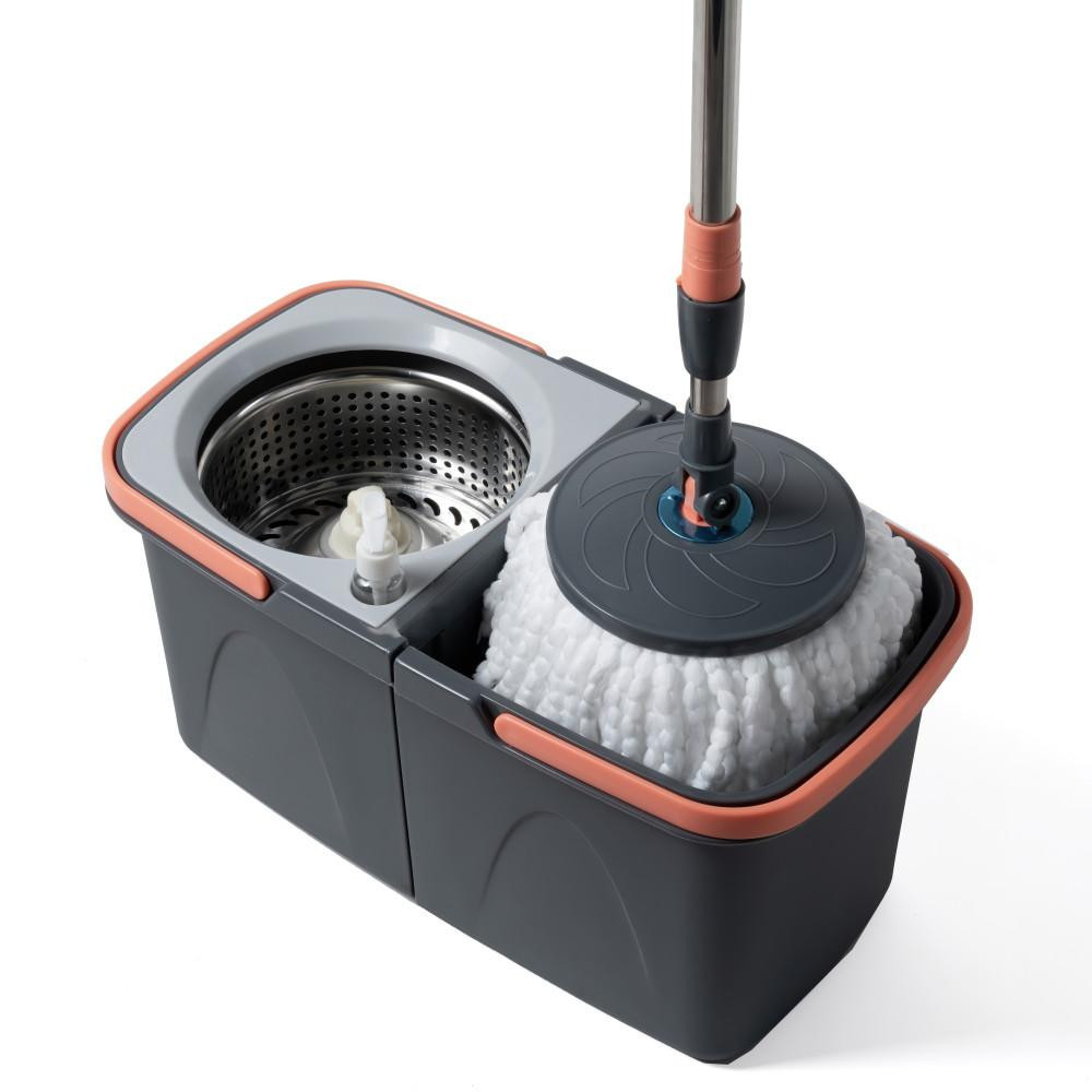 Gyors, könnyű és hatékony takarítás. A forgó facsarórendszernek köszönhetően hatékonyan facsarható ki a víz a mopból. A kevés folyadéknak köszönhetően a vízre érzékenyebb felületeken is használható. Osztott a vödör a tiszta és piszkos víz elválasztásához. Jó nedvszívó és szennyeződésgyűjtő moppal.