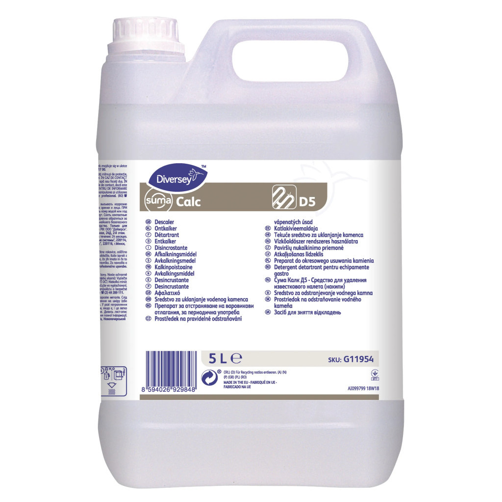 A Suma Calc D5 egy savas összetételű koncentrált vízkőoldószer, mely hatékonyan használható mosogatógépek, valamint konyhai eszközök és berendezések vízkőtelenítésére.