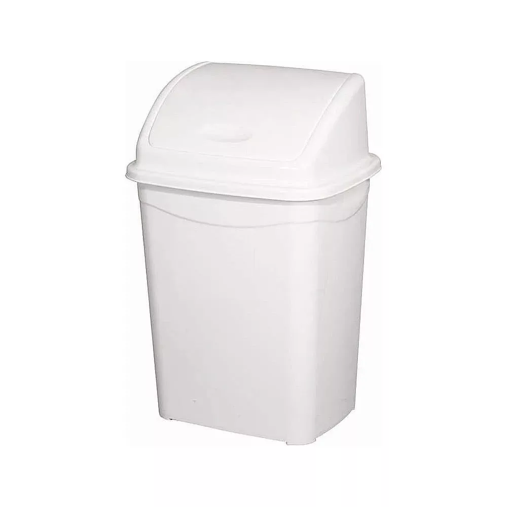 A kis kapacitású, fehér színű műanyag szemetes billenőfedeles fedéllel, 5 literes űrtartalommal; ideális választás fürdőszobába, irodaíróasztal mellé vagy hálószobába.