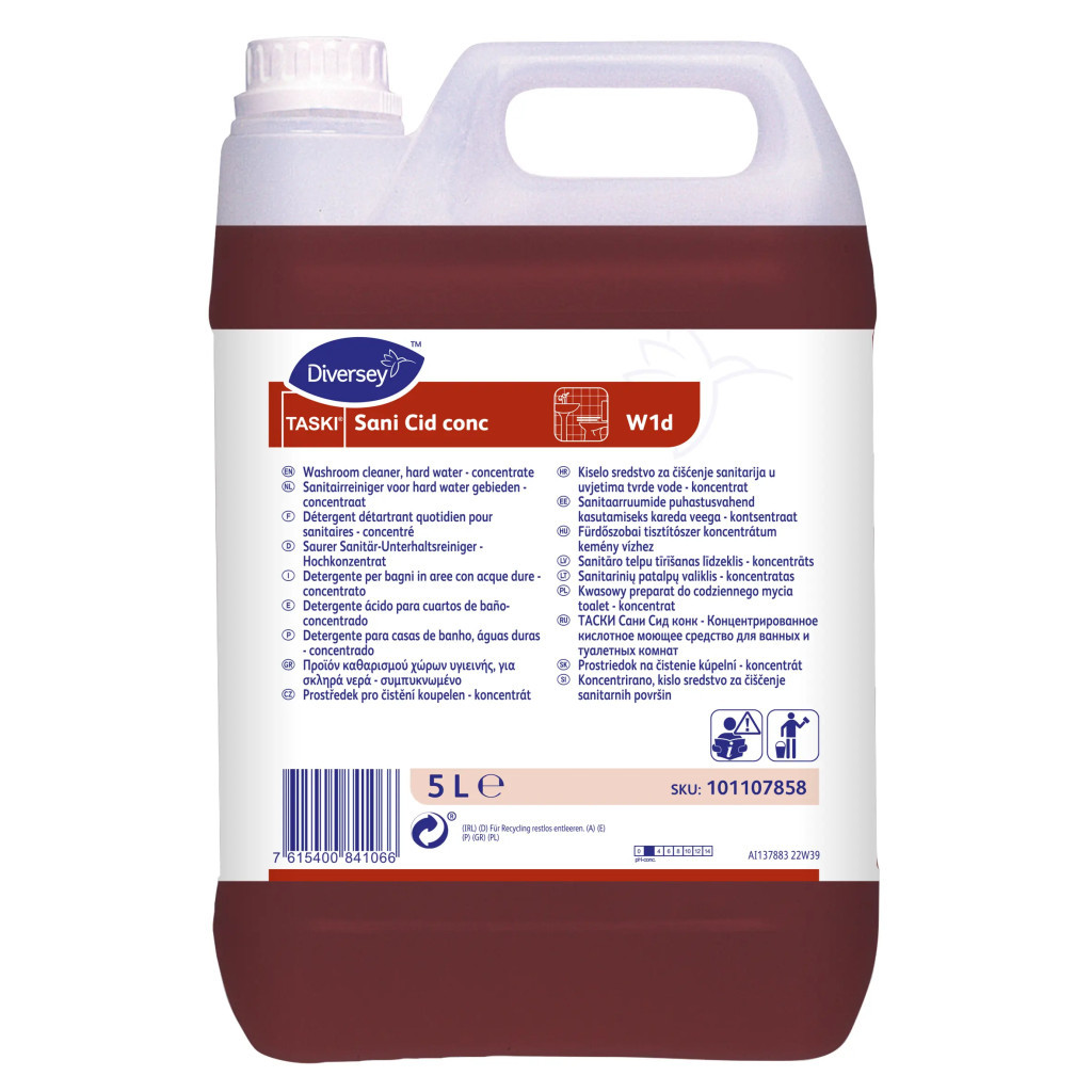 TASKI Sani Cid conc W1d 5L - Citromsav alapú fürdőszoba-tisztító koncentrátum kemény vízhez