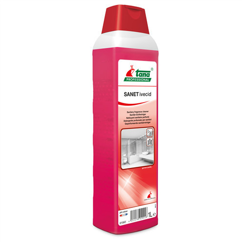 A Tana Ivecid illatos szanitertisztító egy univerzálisan alkalmazható tisztítószer, amely tartós illattal rendelkezik. Ideális a vizesblokkokban és más vízálló felületeken történő napi takarításhoz.