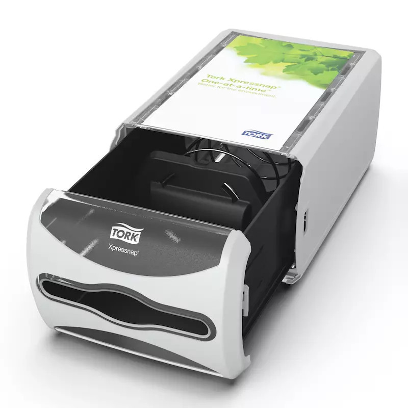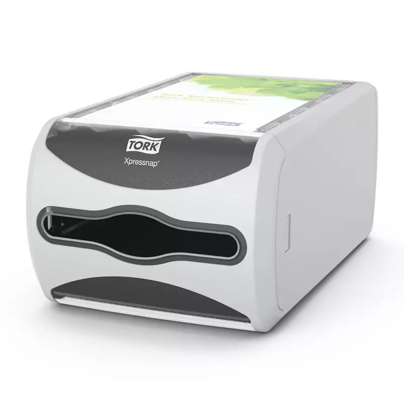 A Tork Xpressnap® pultra tehető szalvétaadagoló kitűnő választás az olyan gyorséttermekben, ahol a szalvétákat egy központi helyre teszik ki. A modern adagolóból egyszerre csak egy szalvétát lehet kiemelni, így javul a higiénia, és akár 43%-kal csökken a hulladékmennyiség a hagyományos szalvétaadagoló rendszerekhez képest.