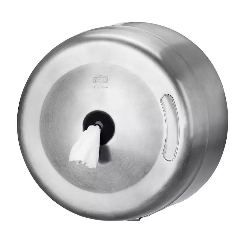 A Tork SmartOne® toalettpapír adagoló hatékony, masszív, rozsdamentes acélból készült adagolórendszer, amely nagy forgalmú mosdóhelyiségekben bizonyít igazán. A laponkénti adagolással a fogyasztás akár 40%-kal csökkenthető a hagyományos, jumbo tekercses adagolókhoz képest – azaz egy tekercsre több felhasználó jut.