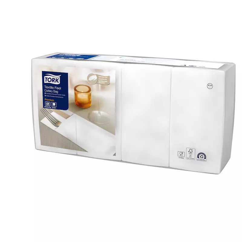 Tork evőeszköztartó Premium White Cutlary 39X39, fehér, textilutánzatú, 200 lap/csg, 6csg/karton