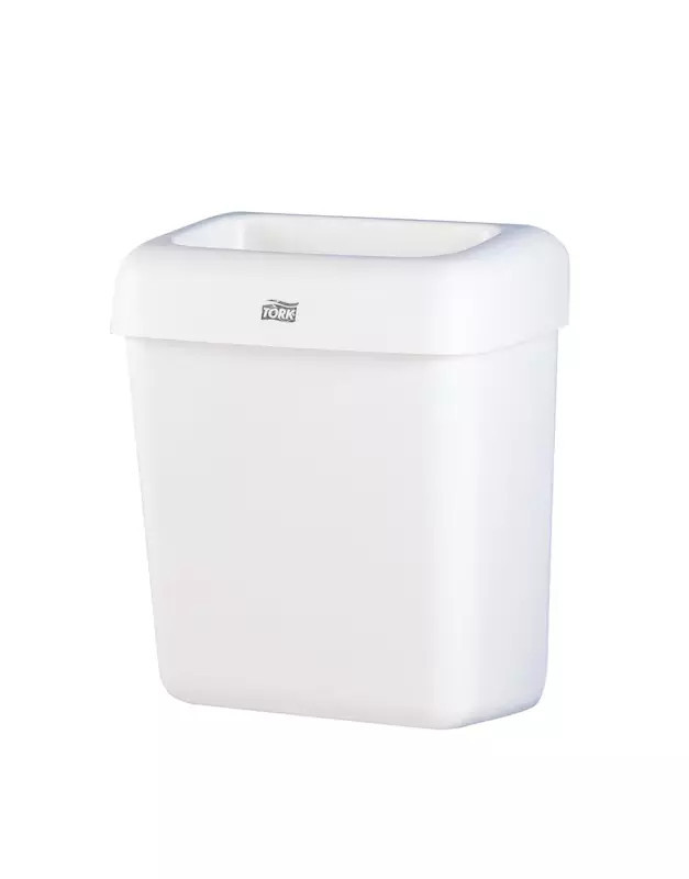 A 20 literes Tork hulladékgyűjtő jól illeszkedik különféle mosdóhelyiségekbe, szükség esetén pedig falra is szerelhető.