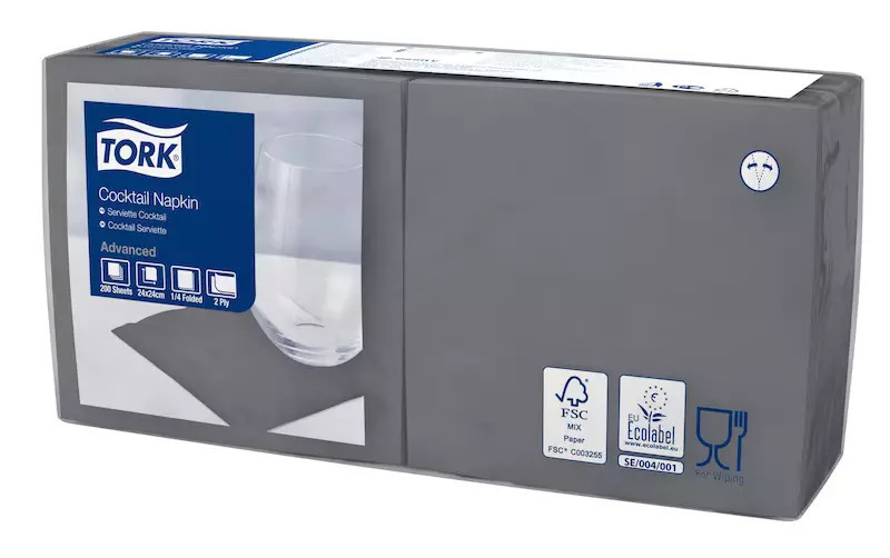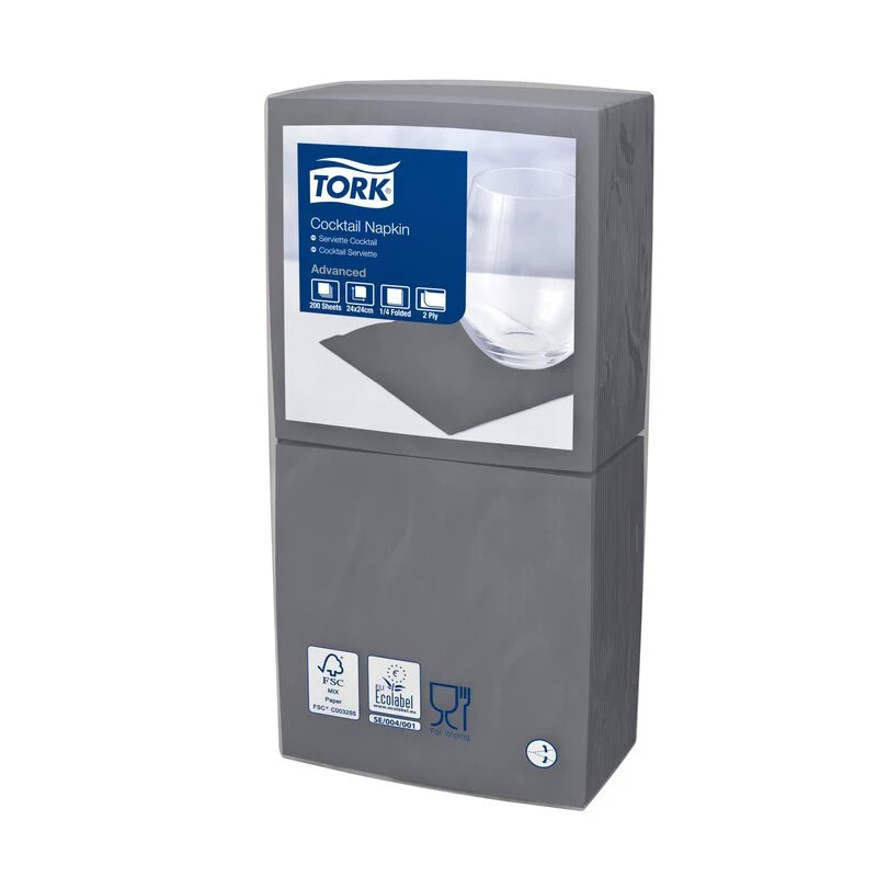 Tork szalvéta koktél, 24/2 ANTRACIT, 200lap/csg, 12csg/karton