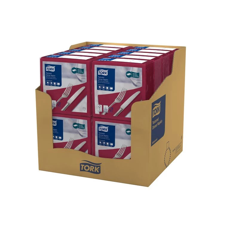 Tork szalvéta textilhatású Dinner, 39,5X39,5cm, BORDÓ, 1/4 hajtás, 50 lap/csg, 20csg/karton