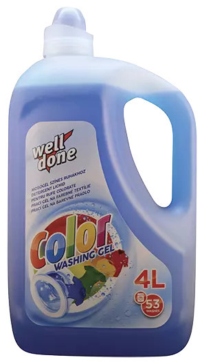 Mosógél színes ruhákhoz, gépi és kézi mosásra egyaránt alkalmas. Kiváló zsír és folteltávolító hatású. Közvetlenül foltra is önthető.