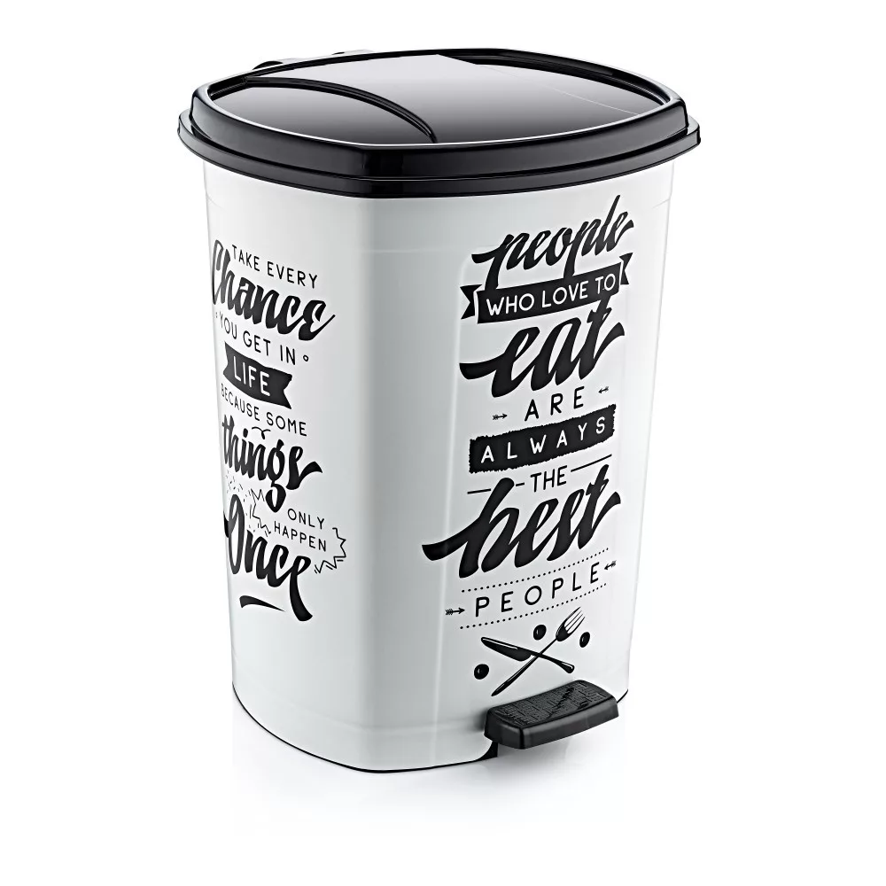 Műanyag pedálos szemetes, fehér/fekete mintás, GOGO 20L