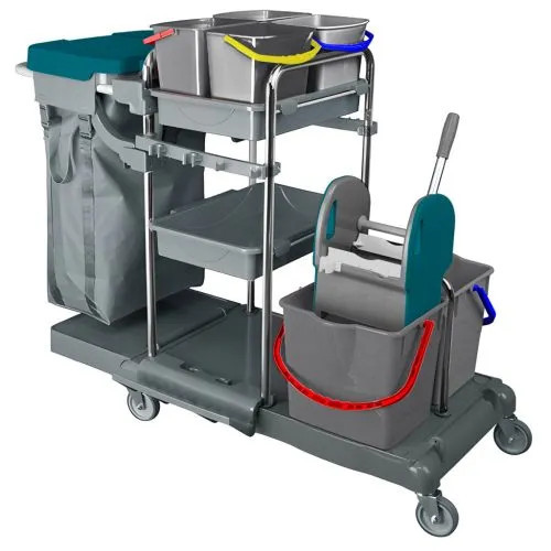 Kombi takarítókocsi műanyag+ krómvázas 2x18literes + 4x5literes vödör