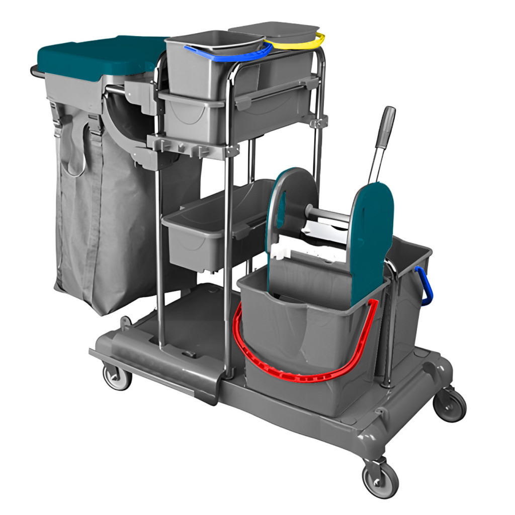 Kombi takarítókocsi műanyag + krómvázas 2x18literes + 2x5literes vödör