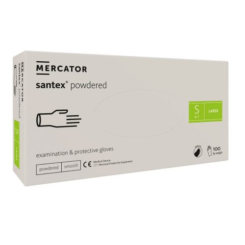 MERCATOR gumikesztyű Santex powdered latex púderes vizsgálókesztyű "S" (100db/doboz, 10doboz/karton)