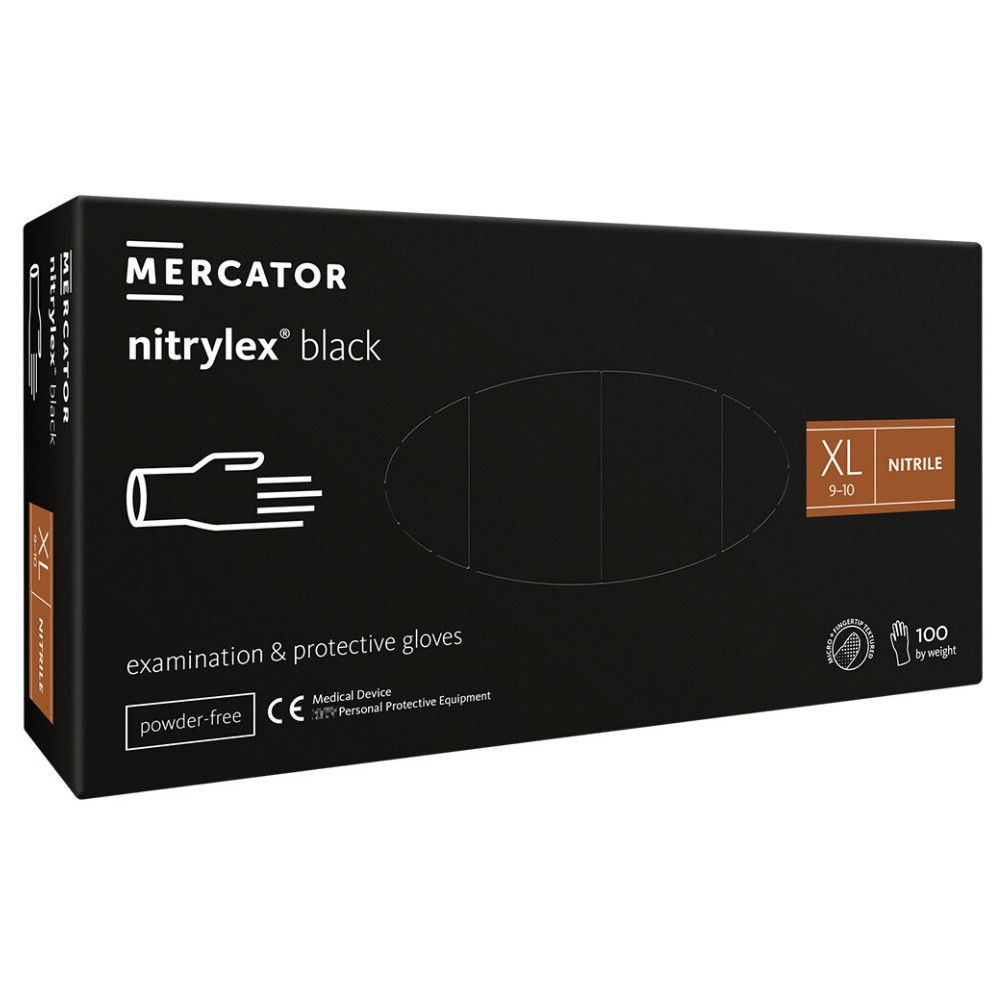 MERCATOR gumikesztyű Nitrylex black nitril púdermentes fekete vizsgálókesztyű "XL" (100db/doboz, 10doboz/karton)