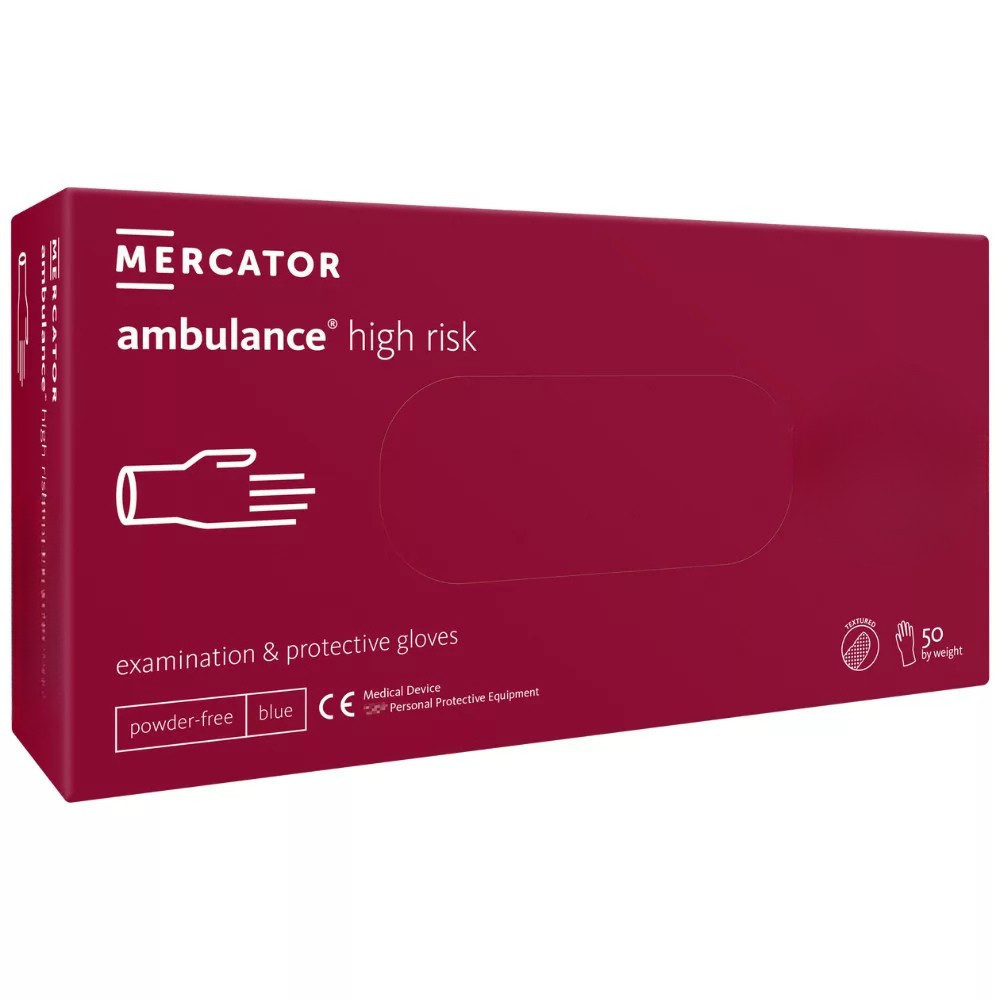 MERCATOR gumikesztyű AMBULANCE HIGH RISK latex púdermentes kék, vastag vizsgálókesztyű "M" (50db/doboz, 10doboz/karton)