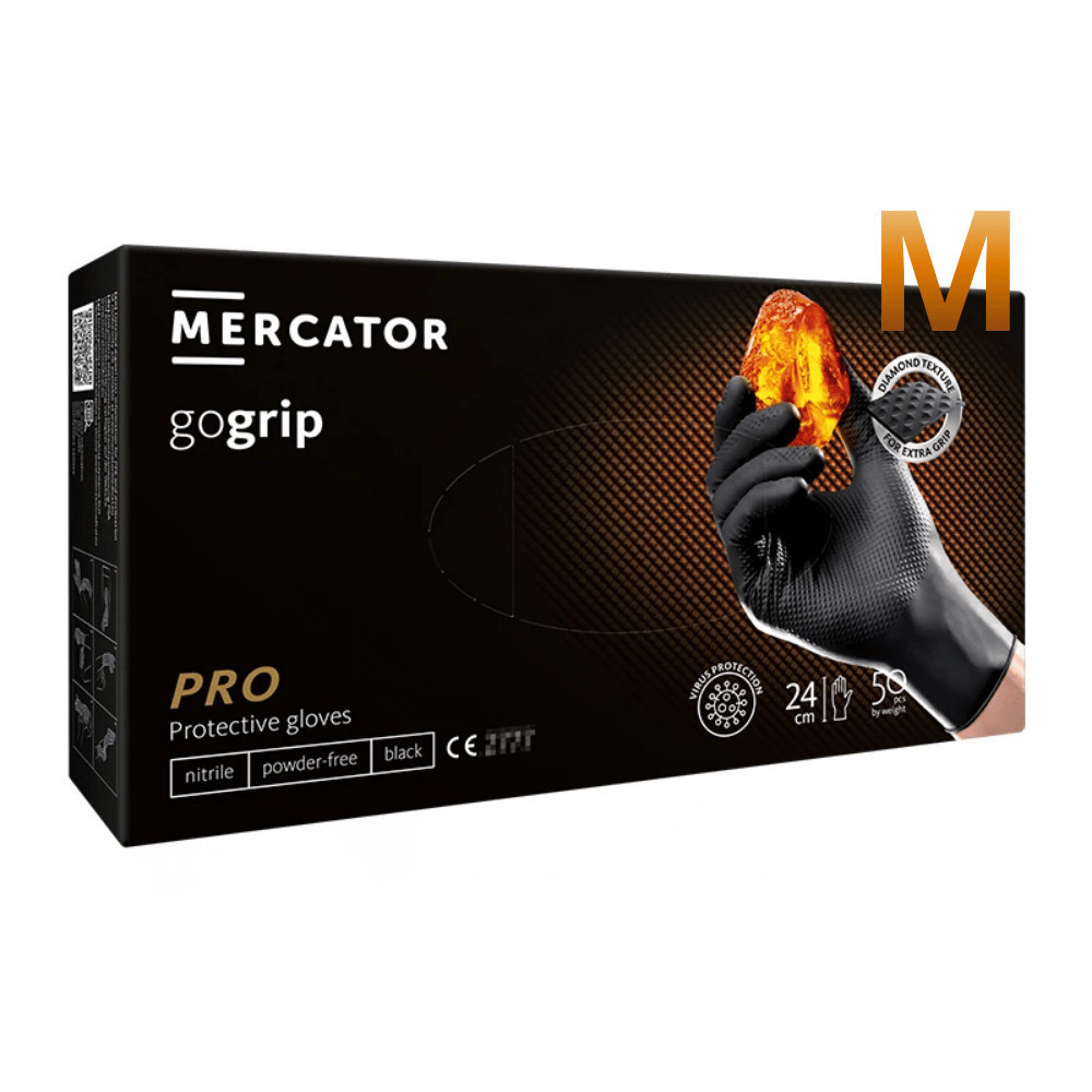 MERCATOR gumikesztyű gogrip (black)nitril védőkesztyű fekete púdermentes, gyémánt textúrált "M" (50db/doboz, 10doboz/karton)