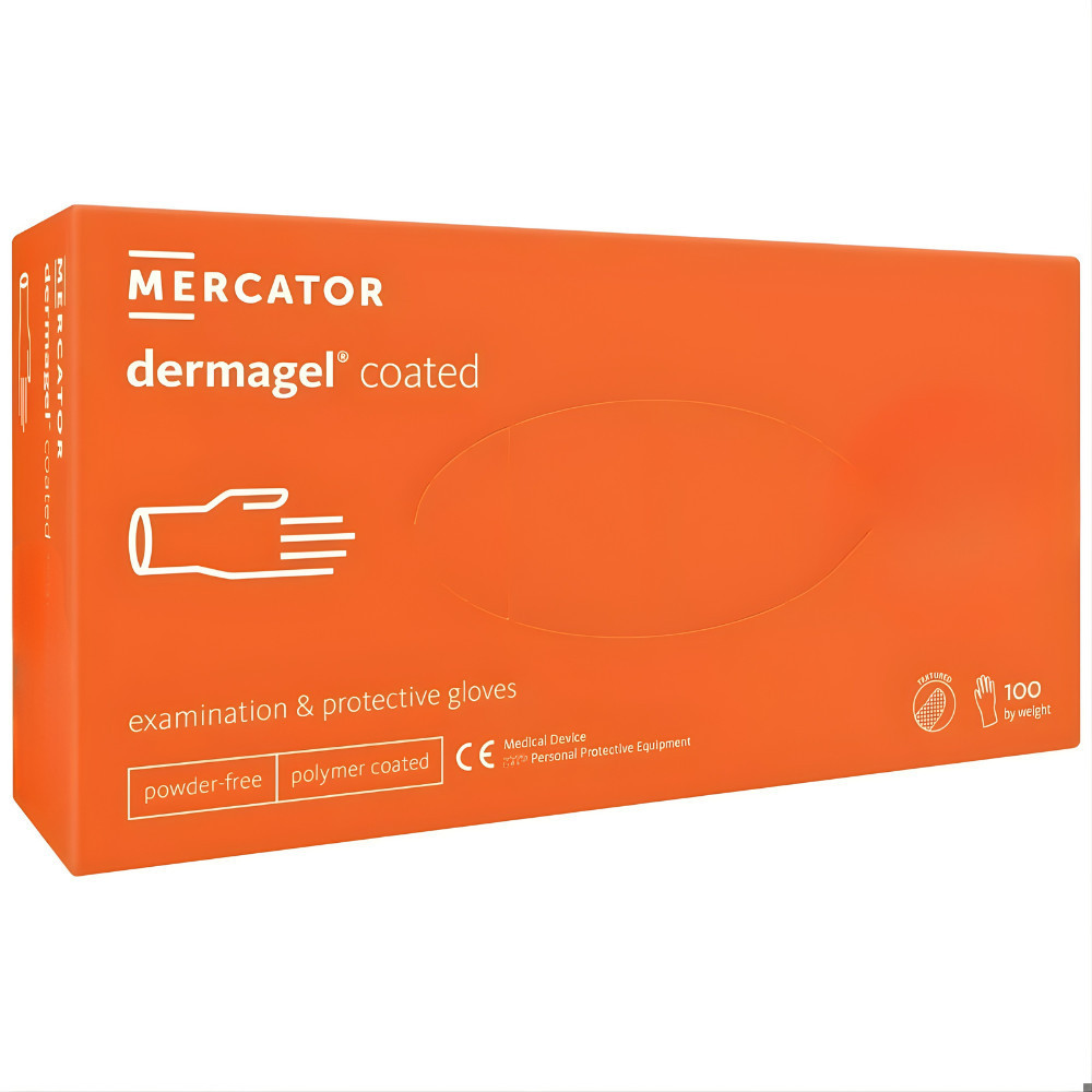 MERCATOR gumikesztyű Dermagel coated kopolimeres latex púdermentes vizsgálókesztyű "S" (100db/doboz, 10doboz/karton)