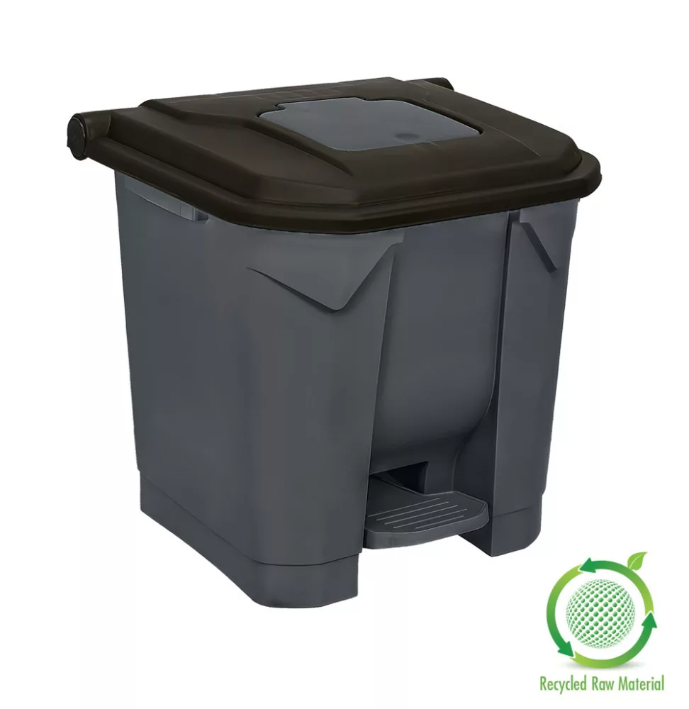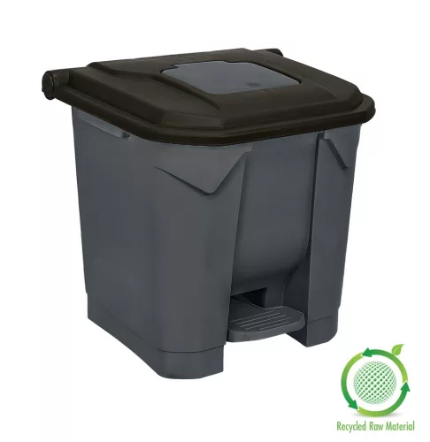 - Szelektív hulladékgyűjtő konténer, műanyag, pedálos, Antracit, 30L