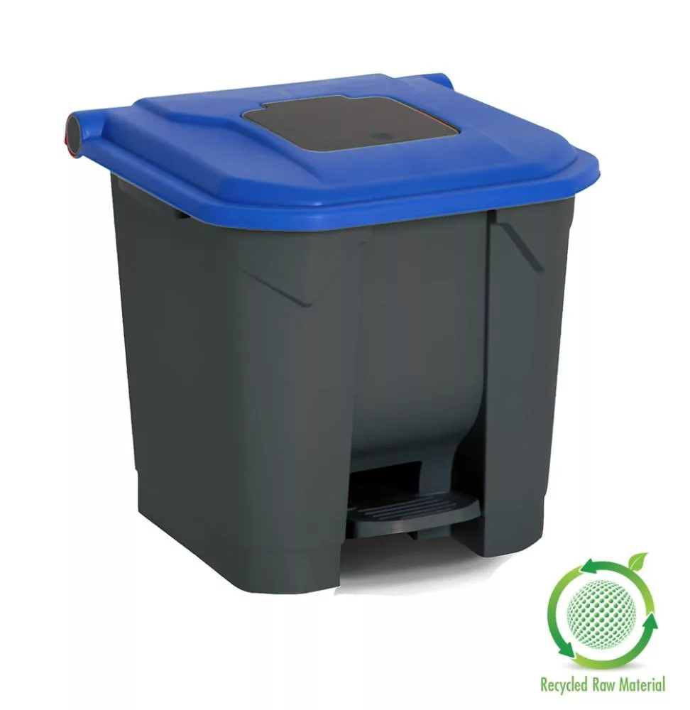 Szelektív hulladékgyűjtő konténer, műanyag, pedálos, antracit/kék, 30L