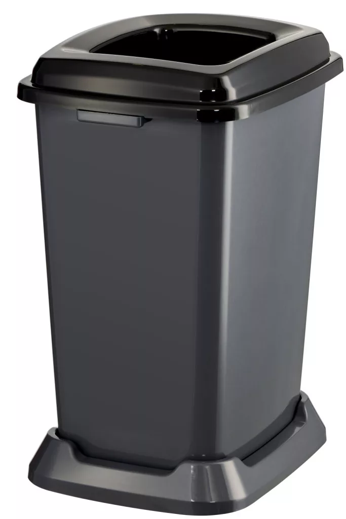 Szelektív hulladékgyűjtő konténer, műanyag, nyitott fedeles, fekete, 50L