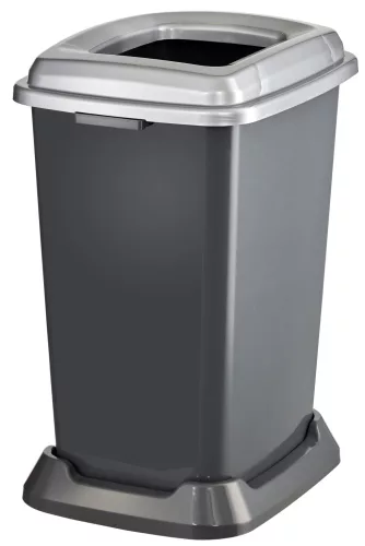 Szelektív hulladékgyűjtő konténer, műanyag, nyitott fedeles, fém színű, 50L